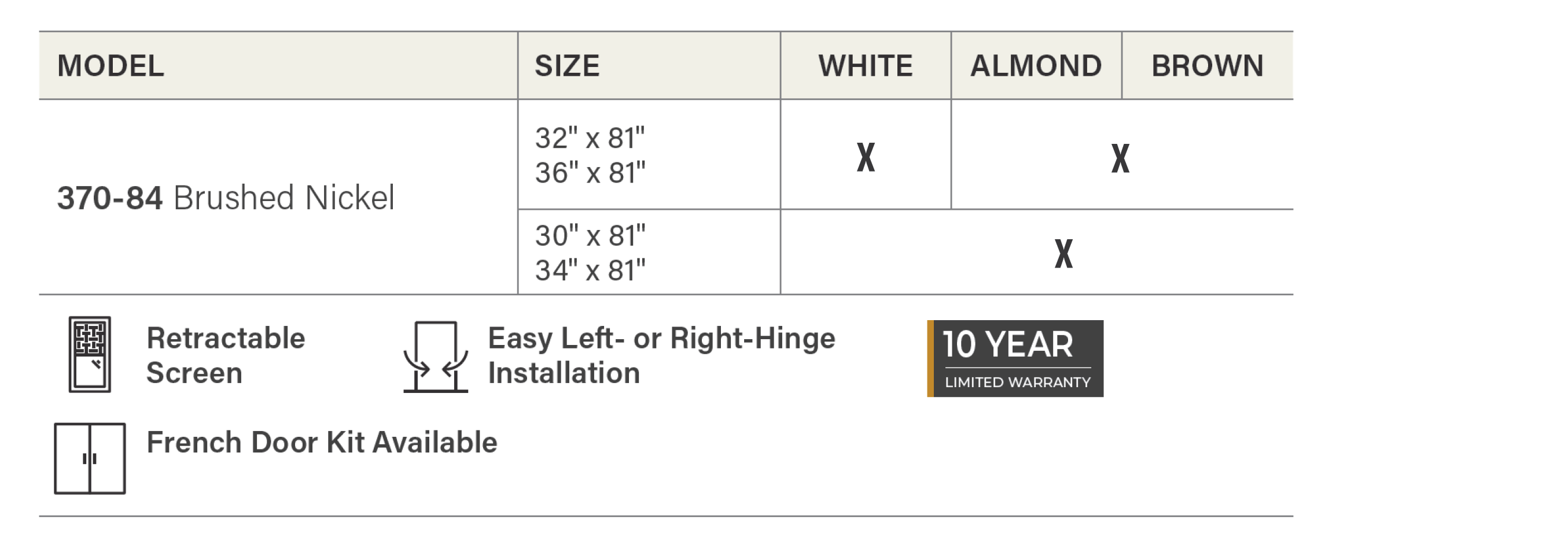 • Magnetic weatherstrip adheres to aluminum frame for a tight seal.